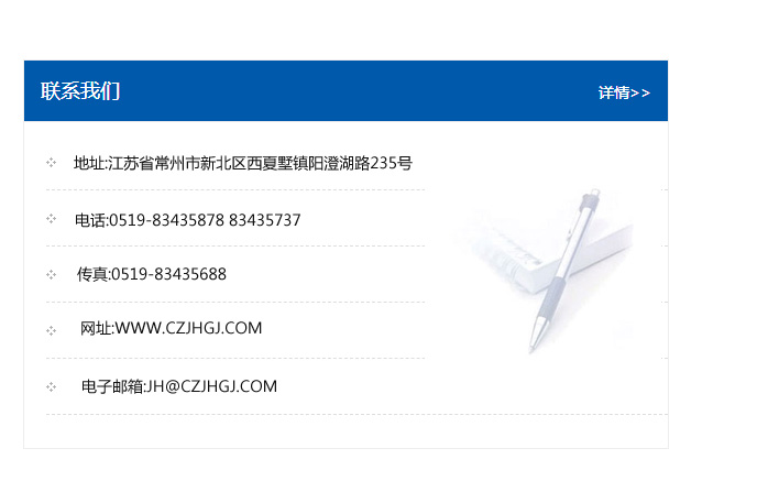 地址:常州市新北區友邦商務大廈1幢16、17層  電話:0519-85101652  傳真:0519-85112595  郵編:213022  網址:www_cz-jiayue_cn.hoonking.com  郵箱:xiajifengaa@163.com
